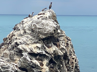 בחלקה האחרון הדרך רצה לאורך חוף הים וממש צמודה לו. גם כאן יש גאות ושפל. שכחתי לכתוב לכם שאתמול חזרנו בשעת הגאות המלאה בשטחים שבבוקר ראינו בשפל. היה מדהים. היום הגענו בשפל וראינו את הקרקע הכוללת סלעים רבים חשופים וגלויים. על הקרקע השתרעו מלא כלבי ים, כולל גורים יונקים מאמאותיהם, זכרים גדולים, ושלושה דגמים שונים של שחפים. עצרנו די הרבה פעמים ולא היינו היחידים לעצור להביט ולצלם.