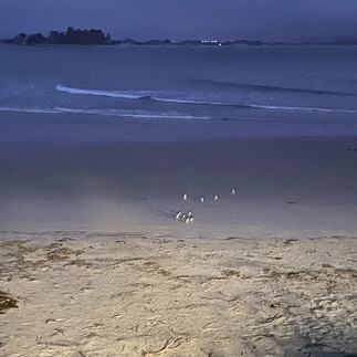 אח״כ ירדנו למרפסת על החוף. היו פיל ים וחמור ים בשנ״צ שלהם. גם אם אלה לא השמות המקוריים שאמא שלהם נתנה להם, הם לפחות נראו כאלה. אחרי החשיכה (21:30) מתחילים להגיע מהים חבורות של פניגווינים. הם מגיעים בדבוקות צפופות, עולים לחוף והולכים ברגל אל המקום בן נמצאת הטריבונה של האנשים. שומעים אותם מפטפטים ומנסים להתקשר עם הצאצאים או מישהו. כל השהות נמשכת כשעה. רוח קרירה למדי. אבל הכל אוטנטי בטבע. לאיש אין מושג למה הם עושים את המסלול הזה דווקא אחרי שמחשיך אבל ככה זה.